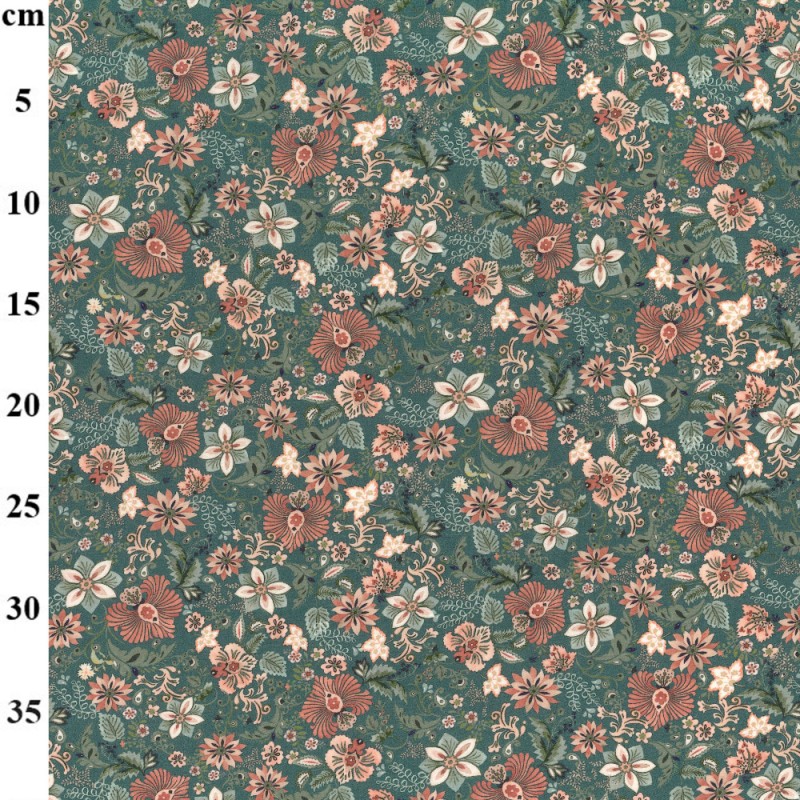 Printed on 100% cotton poplin, it has a smooth hand and gentle drape, making it suitable for quilting, apparel, home décor, and creative sewing projects. The dense floral arrangement gives the fabric a lively, garden-inspired aesthetic.