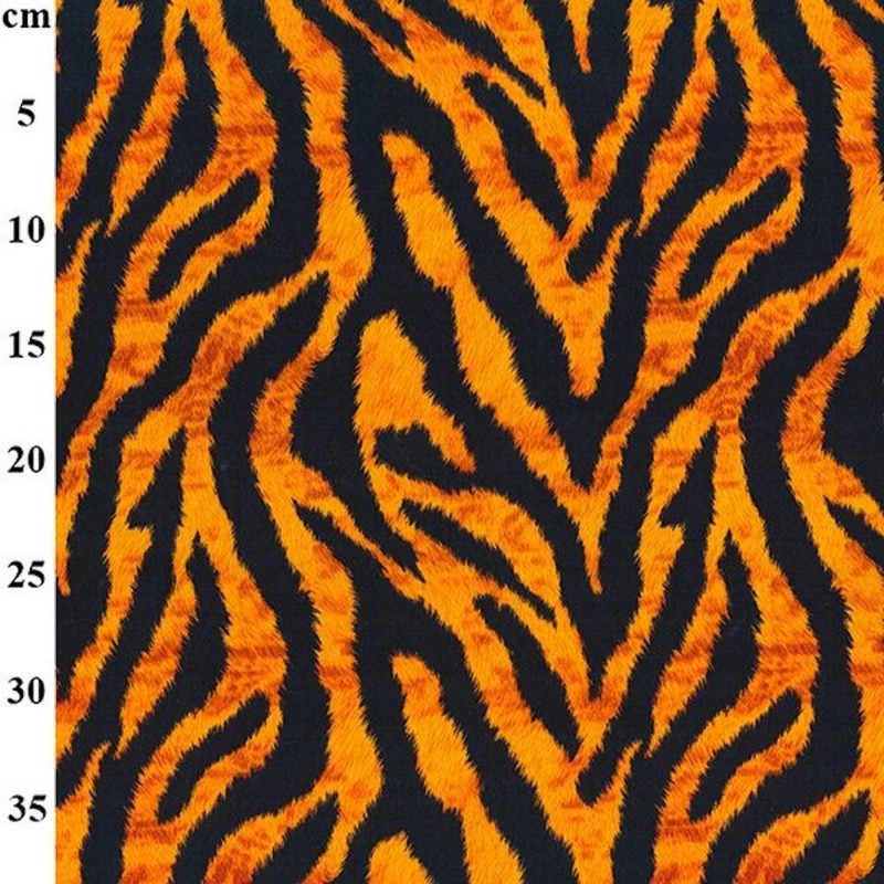 A fierce and eye-catching tiger stripe print in vivid orange and deep black. This classic animal design makes a bold statement and is perfect for standout garments, costumes, accessories and creative sewing projects.