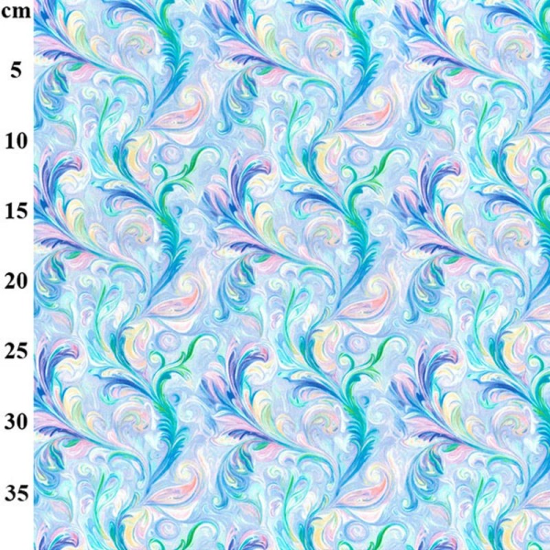 The Rose & Hubble Manor Road Cotton Poplin features a flowing marbled swirl design with soft feathered curves and elegant movement. Inspired by traditional marbling techniques, this print blends delicate tones to create a dreamy, fluid effect full of depth and texture.