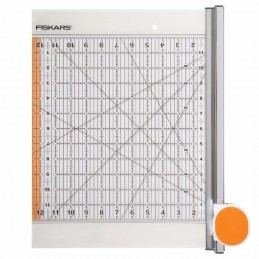 Perfectly sized for precise square cuts, the Fiskars 12" x 12" Rotary Cutter & Ruler Combo simplifies cutting quilting blocks, fabric squares, and smaller pieces with speed and accuracy. This compact, all-in-one tool features a 12" x 12" acrylic ruler with an integrated 45mm rotary cutter, allowing you to measure and cut in one smooth motion.