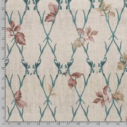 SALE 100% Cotton Canvas Fabric Vintage Floral Trellis Leaves Flower 140cm Wide