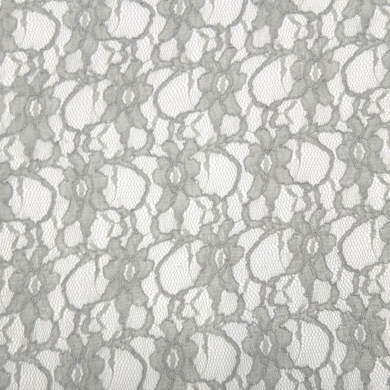 This SALE Grey Corded Lace Fabric Raschel is a high-quality lace featuring an elegant corded floral pattern with excellent definition and texture. The cotton-mix construction gives the fabric a soft, quality handle, while the nylon content adds durability and structure.