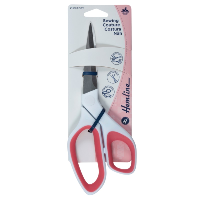 These versatile sewing scissors from Hemline feature stainless steel blades paired with soft grip handles for comfort and precision. Designed for ease of use by both left and right-handed users, they provide a smooth and accurate cutting experience for fabric and general sewing tasks. The 21cm (8.1in) length offers excellent control for everyday sewing needs. Perfect for home sewing, crafting, and tailoring projects. Wipe clean with a dry cloth for best maintenance.