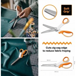 Perfect for fabric crafting and dressmaking, the Fiskars Pinking Shears feature high-grade, precision-ground stainless steel blades designed to cut clean, crisp zig-zag edges. This not only adds a decorative touch but also effectively reduces fabric fraying and unraveling. The ergonomically contoured handle includes Softgrip™ inserts, offering enhanced comfort and control for long cutting sessions. Ideal for both crafting enthusiasts and sewing professionals, these shears combine durability, precision, and user comfort.