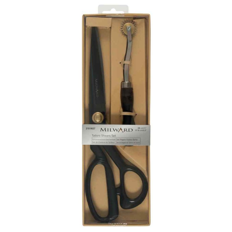 This beautiful Milward gift set features premium quality, heavy-duty steel tailors shears paired with a coordinating tracing wheel, making it the perfect addition to any sewing box. The tailors shears measure 28cm (11in) and feature comfortable ergonomic black PVC handles. The tracing wheel has a 2.5cm diameter toothed wheel and an ergonomic handle for ease of use. Presented in a stylish kraft paper gift box with a clear plastic lid, this set offers both functionality and elegance.