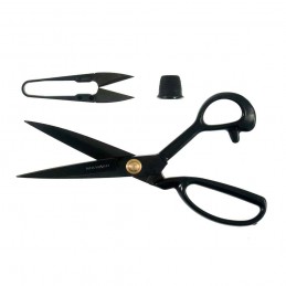 This beautiful Milward gift set features premium quality, heavy-duty steel tailors shears paired with coordinating thread snips and a metal thimble, making it an essential addition to any sewing box. The tailors shears measure 28cm (11in) with comfortable ergonomic black PVC handles, while the thread snips measure 10cm (4in), suitable for a variety of threads, yarns, and ribbons. The set is presented in a stylish kraft paper gift box with a clear plastic lid, combining functionality and elegance.