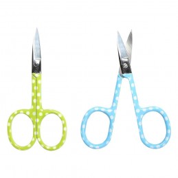 Fine tip embroidery scissors measuring 9.3cm (3.6in). These scissors come packed in a stylish parrot print PU pouch featuring a snap button closure to securely hold the scissors.