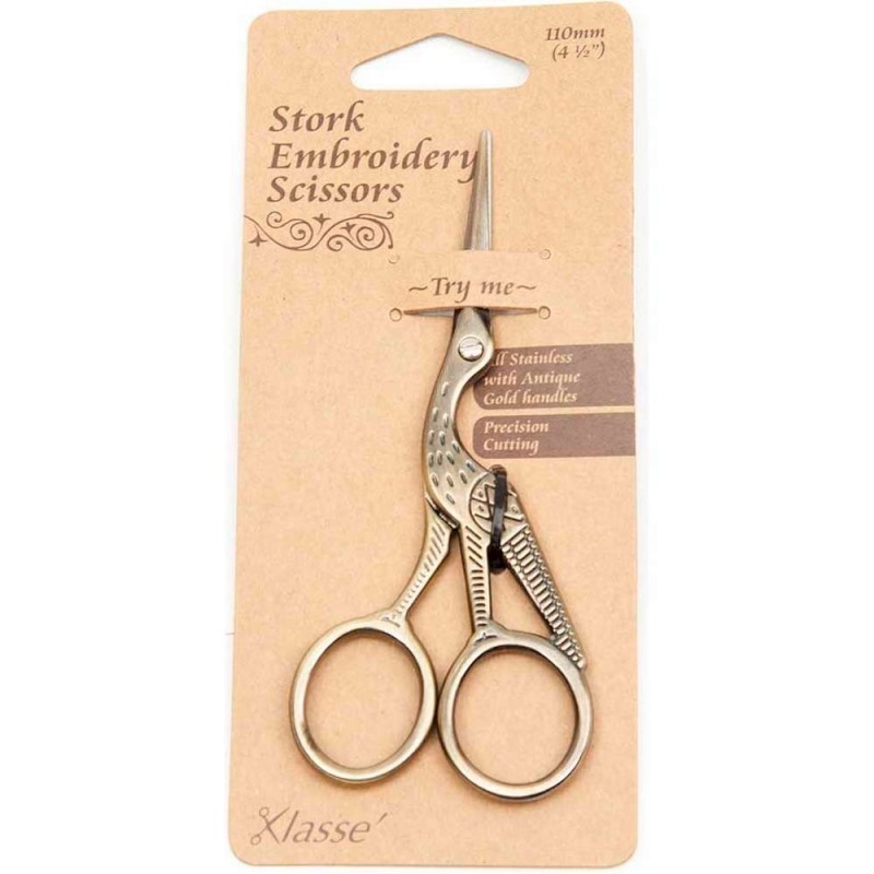 Classic and elegant stork design embroidery scissors measuring 11.43cm (4.5 inches) in length. Crafted for precision cutting of embroidery threads and detailed needlework. These scissors feature a vintage-style handle shaped like a stork, making them a charming and practical addition to your sewing kit. Perfect for delicate hand sewing, cross stitch, and other fine needlework tasks.