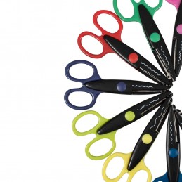 Summary Professional 20cm (8in) pinking shears Stainless steel sawtooth blades prevent fabric fraying Smooth ball bearing joint for easy cutting action Lightweight ergonomic handles for comfort and control Available in pink or purple handles (random selection) Suitable for use on all fabric types Display dimensions: 20 x 18 x 27 cm (d/w/h)