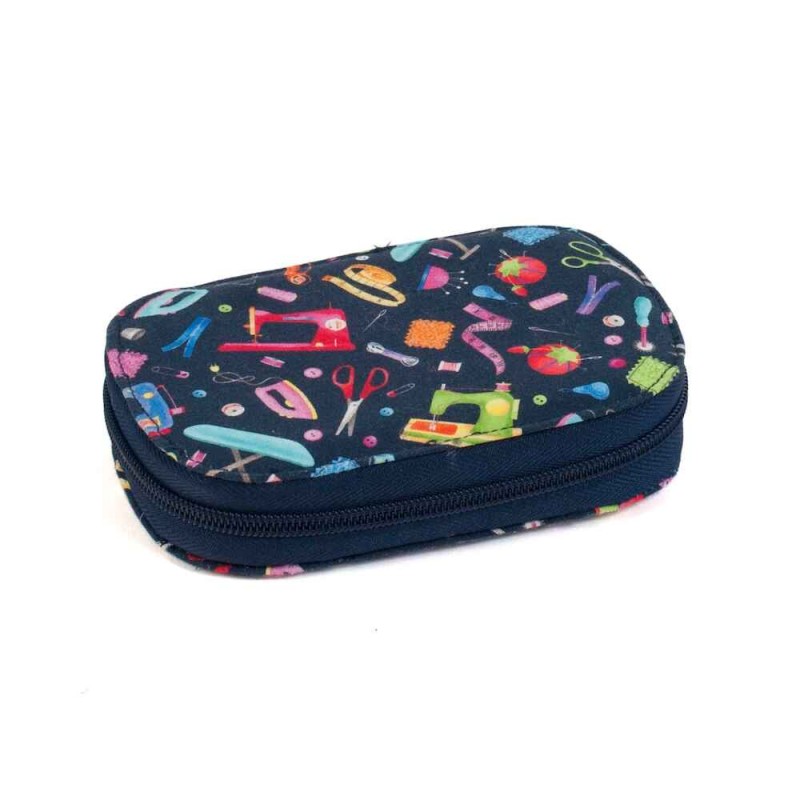 Compact cotton zippered sewing kit with colourful Mini Sew Machines print