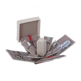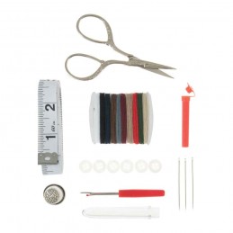 Bullet Point Summary: 100% cotton zip case in Wildflowers print Contains 12 thread reels, seam ripper, scissors, and tape measure Includes 6 buttons, 3 safety pins, 5 needles, and a thimble Compact and ideal for travel or emergencies Spot clean only Size: 2.5 x 14 x 9cm