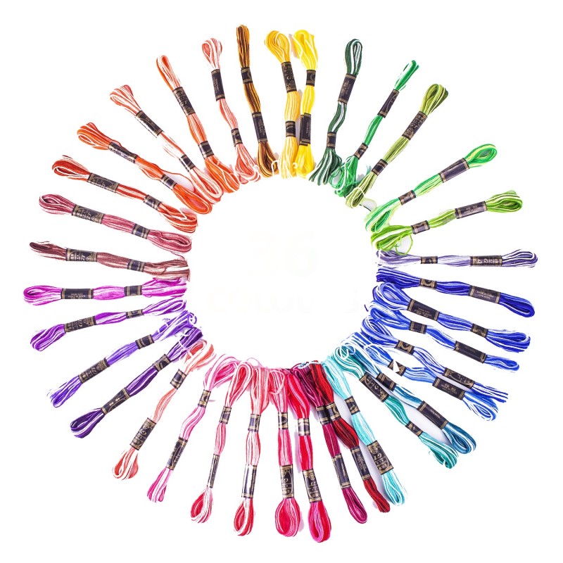 Summary Set of 36 embroidery thread skeins in assorted colours Each skein contains 8 metres of polyester floss Wide range of shades for creative projects Suitable for cross stitch, embroidery and crafts Ideal for hair wraps, braiding and decorative stitching