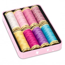 The Gutermann Cute & Pink Thread Storage Tin is a stylish and practical sewing set featuring a fun pink themed design. Inside the decorative metal tin you’ll find 7 reels of Gutermann Sew-All thread (100m each) along with 1 reel of Metallic Effect Thread (50m) for adding sparkling decorative touches to your projects.