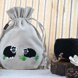 The Lantern Moon Meadow Bag in Natural Black is a delightful and practical storage solution for knitters and crocheters. Crafted from soft natural cotton fabric, it features two adorable embroidered sheep on the front, adding a touch of whimsy and charm to your crafting accessories.