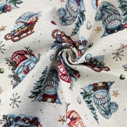 Bring your festive creations to life with this luxury Christmas gonk tapestry fabric, beautifully woven with subtle lurex yarn for a delicate sparkle. Featuring adorable winter gonks, snowy trees and seasonal details on a natural woven base, this fabric instantly adds a premium, cosy Christmas feel to any project.