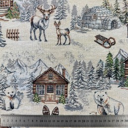 Bring a peaceful seasonal feel to your projects with this luxury Winter’s Tale tapestry fabric, featuring beautifully detailed snowy cabins, woodland animals, igloos and winter forests. The soft, neutral background enhances the intricate design, creating a calm and cosy winter aesthetic.