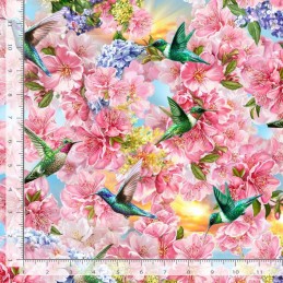 100% Cotton Digital Fabric | Timeless Treasures | Hummingbirds & Floral | 112cm Wide