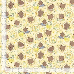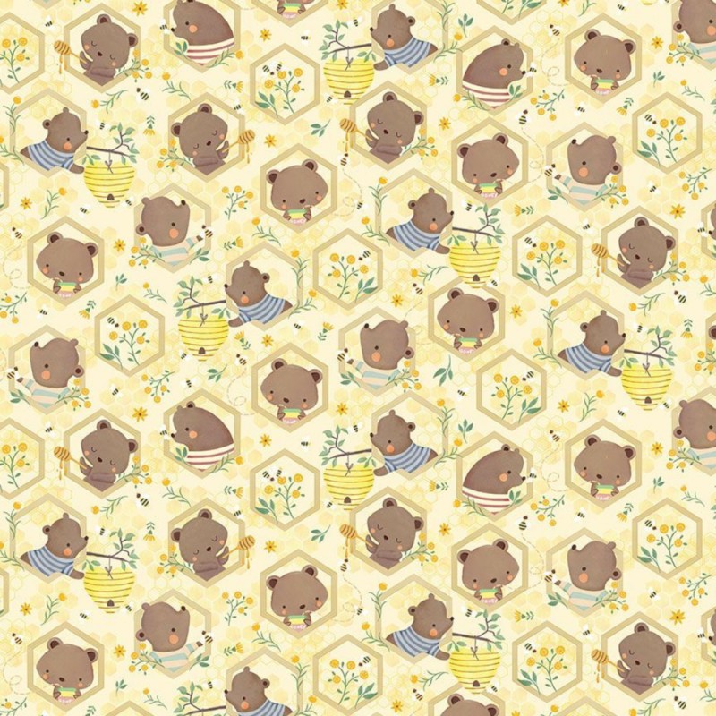 100% Cotton Digital Fabric | Timeless Treasures | Bears On Honeycomb | 112cm Wide