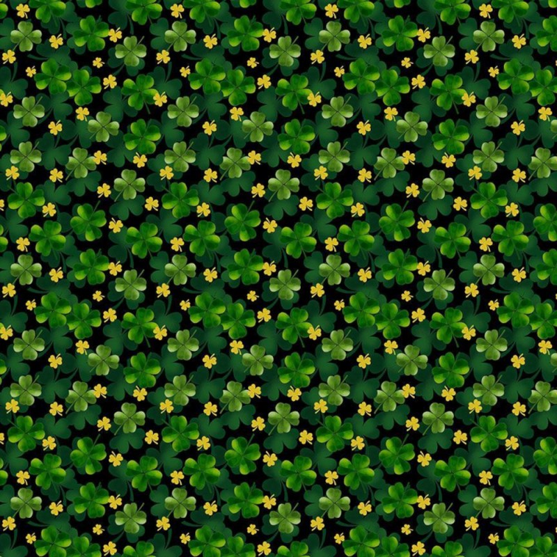 100% Cotton Digital Fabric | Timeless Treasures | Shamrocks on Black | 112cm Wide