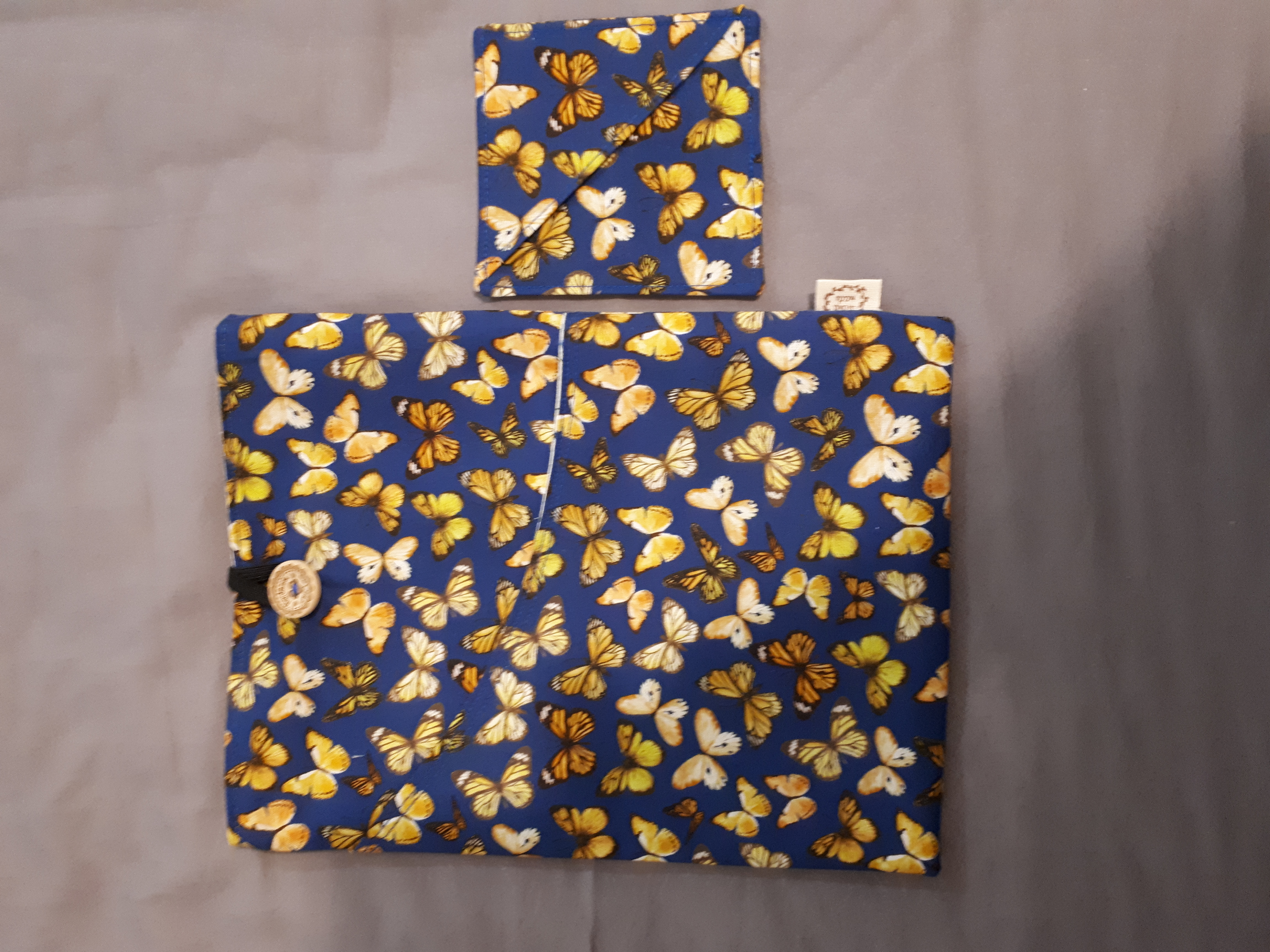 • Scattered butterfly design in orange and yellow