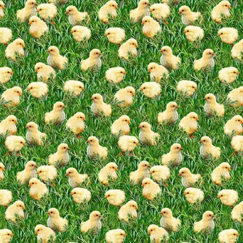 100% Cotton Digital Fabric | Timeless Treasures | Chicks On Grass - Dona Gelsinger | 112cm Wide