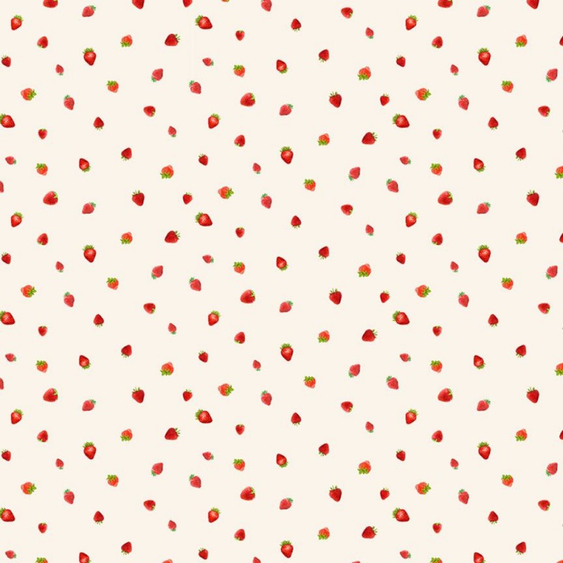 Mini Strawberries from the Berry Sweet collection by Timeless Treasures is a charming small-scale print featuring scattered red strawberries with green stems on a soft cream background. The simple tossed layout gives it a clean, fresh look, while the compact scale makes it ideal for smaller projects or as a subtle accent in patchwork.
