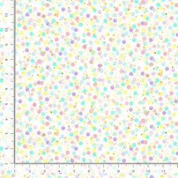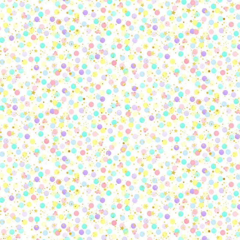 Multi Dots from Timeless Treasures is a light-hearted and charming design featuring clusters of pastel-toned overlapping dots in soft pinks, blues, yellows, and greens. Scattered stars are sprinkled throughout the design, adding a whimsical touch to the creamy background.