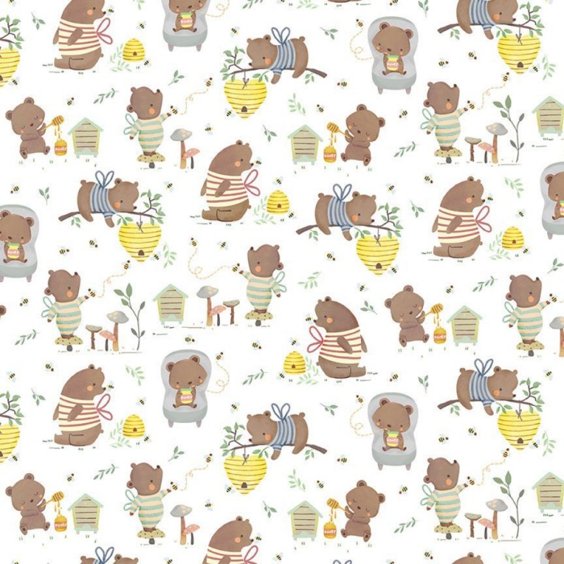 100% Cotton Digital Fabric | Timeless Treasures | Bears & Bees | 112cm Wide