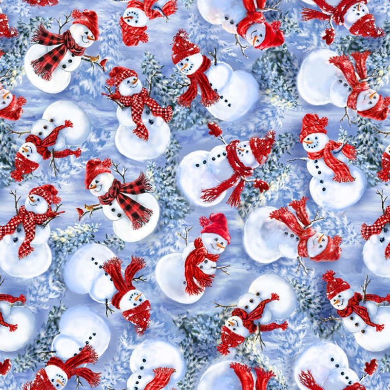 100% Cotton Digital Fabric | Timeless Treasures | Tossed Happy Snowman | 112cm Wide