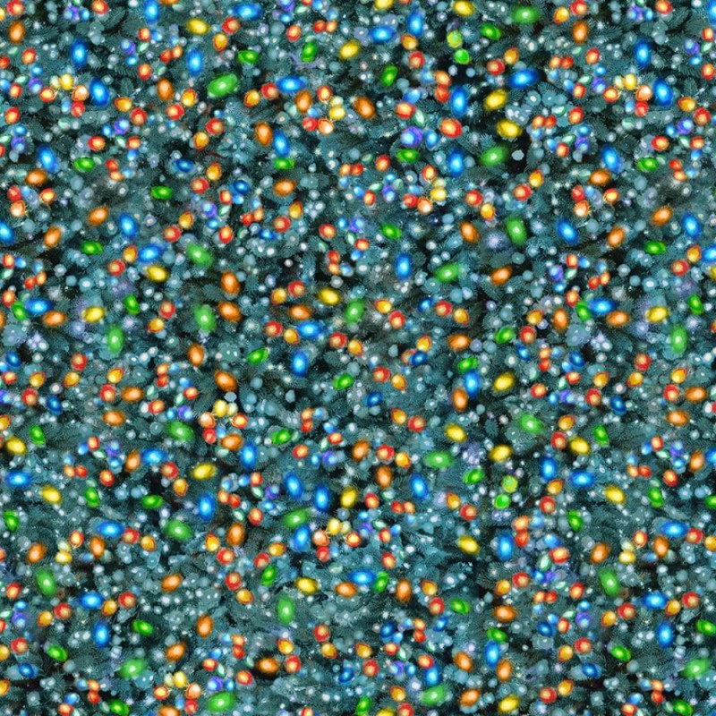 Multi Christmas Lights by Timeless Treasures is a joyful, festive print that captures the magic of Christmas décor. The design features strings of vibrant, multicoloured lights glowing against a rich green background, textured to resemble the branches of a Christmas tree. The combination of colours and the subtle background detail create a warm, celebratory feel.