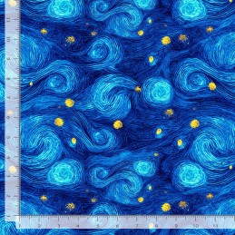 Bring movement and drama into your sewing with the Swirl Wind Texture fabric by Timeless Treasures (FLORA-CD3535 ROYAL). Featuring painterly brushstroke swirls in vibrant royal blue with glowing yellow-golden highlights, this design captures a starry, dreamlike night sky feel with a sense of flowing energy.