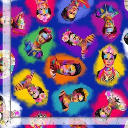 Tossed Bust is part of the Stroke of Genius collection by Timeless Treasures. This bold and artistic fabric features stylised bust portraits of Frida Kahlo, loosely scattered across a vibrant multicoloured background. The painterly style and lively palette of pinks, blues, greens, and yellows celebrate artistic expression and individuality, making this design both striking and inspiring.