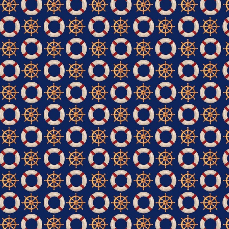 Ship Wheel & Life Preserver is part of the Beacon of Light collection by Timeless Treasures. This fabric features a diamond pattern of alternating ship wheels and white-and-red life preservers set against a plain navy background, creating a classic nautical design. Its structured, maritime-inspired motif is perfect for quilting, home décor, accessories, and sewing projects with a coastal theme.