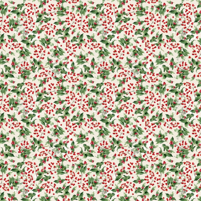 Berry Holly Berry Branches by Timeless Treasures features a classic Christmas design of holly leaves and red berry branches, beautifully arranged across the fabric. The print captures the charm of traditional festive foliage, ideal for quilting, crafting, or adding a seasonal touch to your home décor.