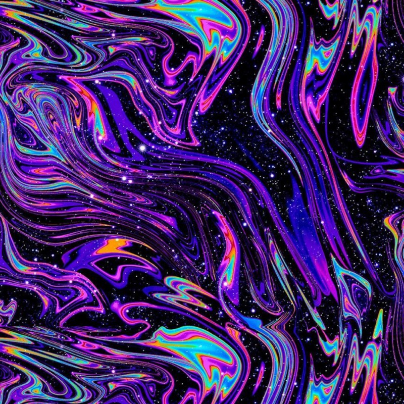 Swirling cosmic marble design in purples, black, and iridescent colours