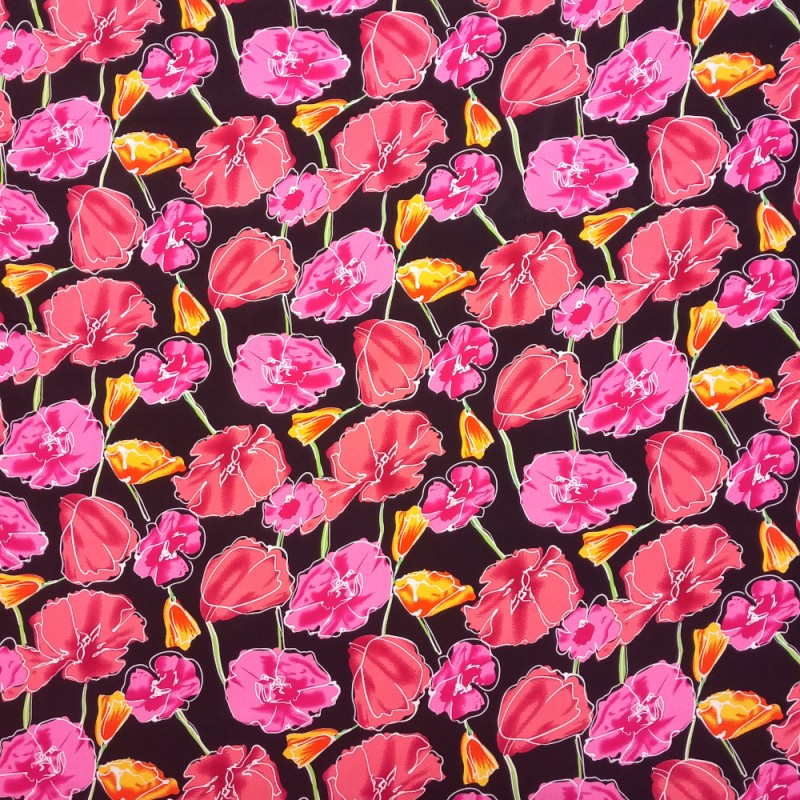 Viscose Fabric Flower Floral Poppies Wildflowers Cedar Close