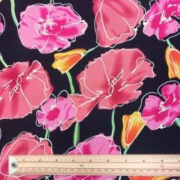 100% Viscose Fabric Flower Floral Poppies Wildflowers Cedar Close 140cm Wide