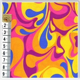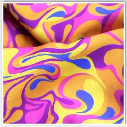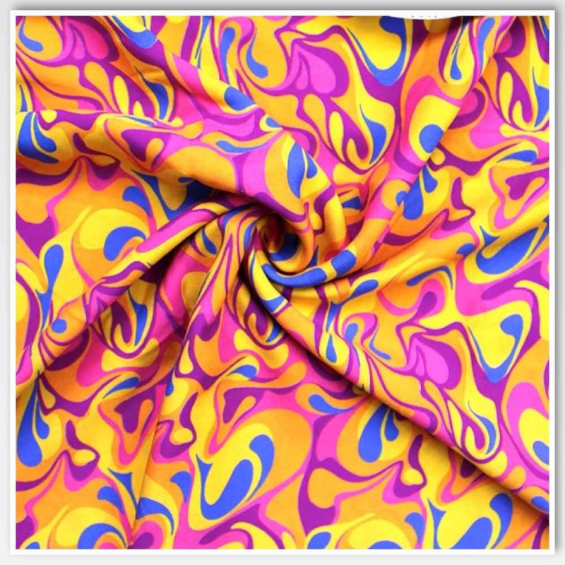 Little Johnny Psychedelic Swirl Viscose Fabric – Retro Yellow, Pink & Blue