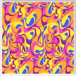 Eye-catching psychedelic swirl print in yellow, pink, blue, and black