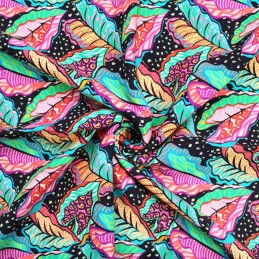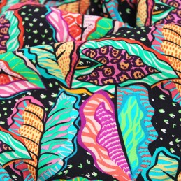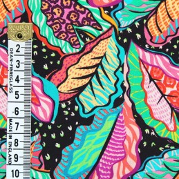 100% Viscose Fabric | Little Johnny | Graphic Leaves - Colourful | 140cm Wide