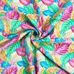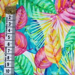 100% Viscose Fabric | Little Johnny | Painted Leaves - Colourful | 140cm Wide