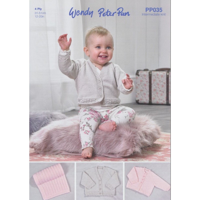 Wendy Wools Knitting Pattern Baby Cardigan & BlanketKnitted in Peter Pan DKPP015